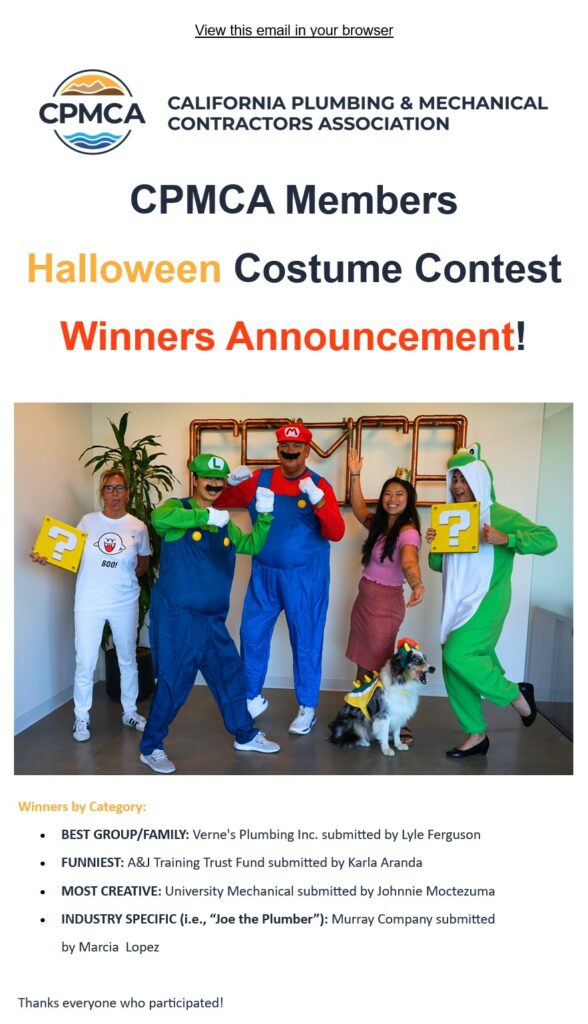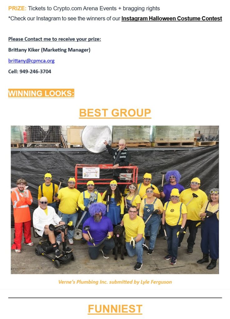 Kudos to the Underground Division who took part in CPMCA’s Halloween Costume Contest. Project Coordinator Marcia Lopez submitted UG’s team photo for which they were awarded 1st place in the “Industry Specific” category. Congrats to the lineup which included (L to R) Marcia Lopez, Ja’Von Holliday, David Castillo, Steve Molina, Jon Loynes (no longer with MC) and JD Lopez.
