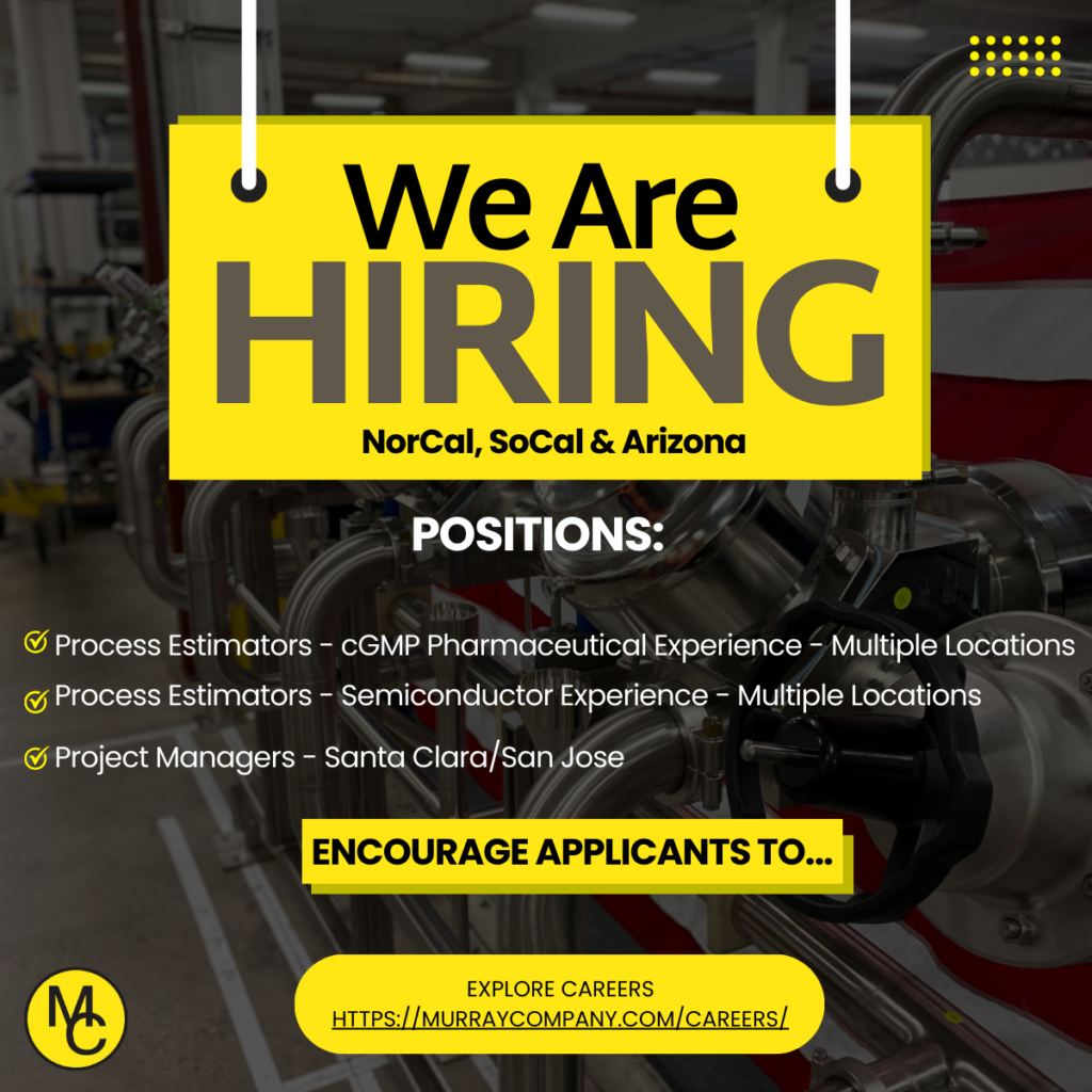 Murray Company is preparing for an exciting year ahead. We’re expanding our teams and actively recruiting top talent to support our continued growth. Currently, we have openings for experienced Process Estimators and Project Managers in multiple locations.